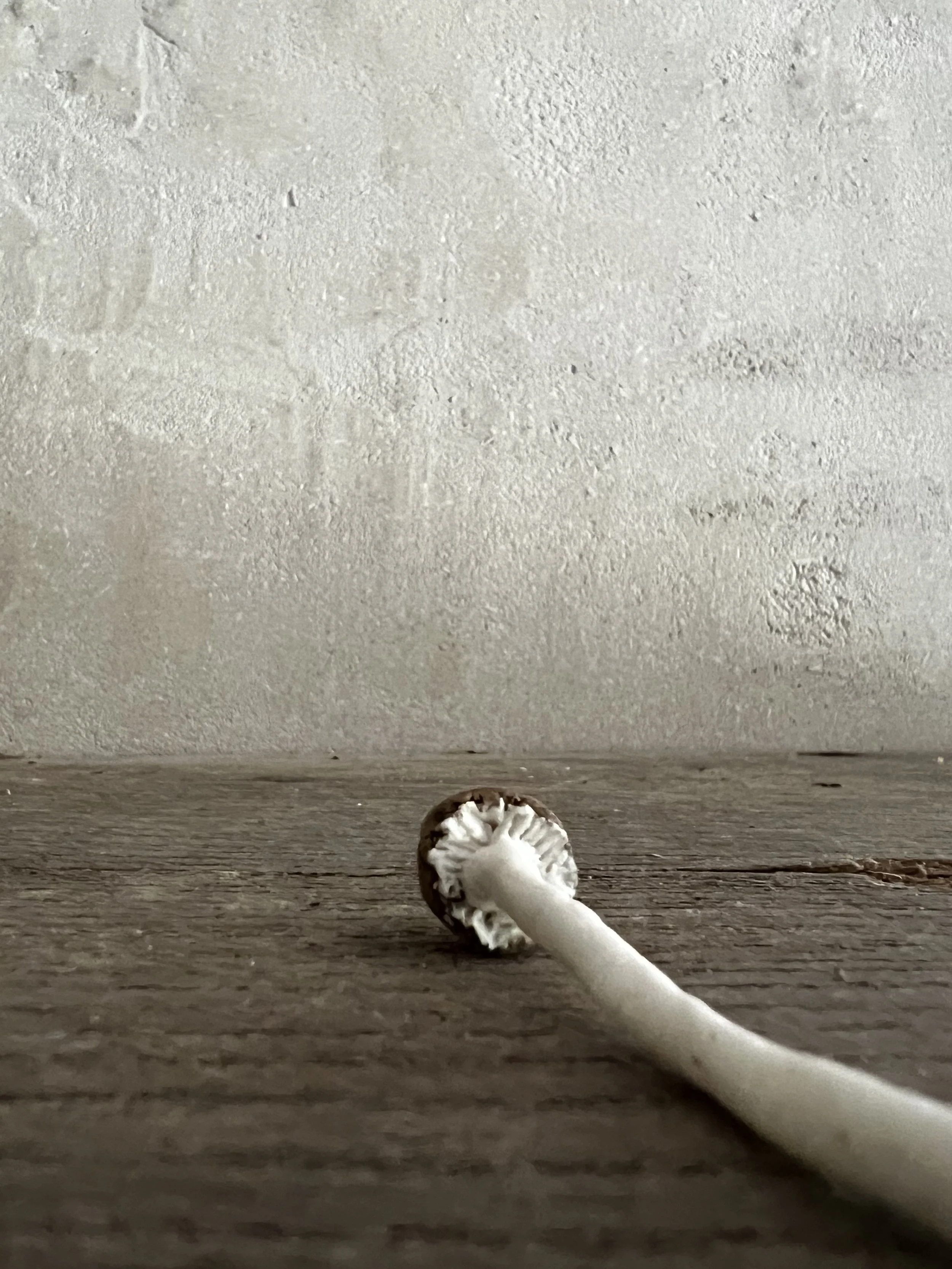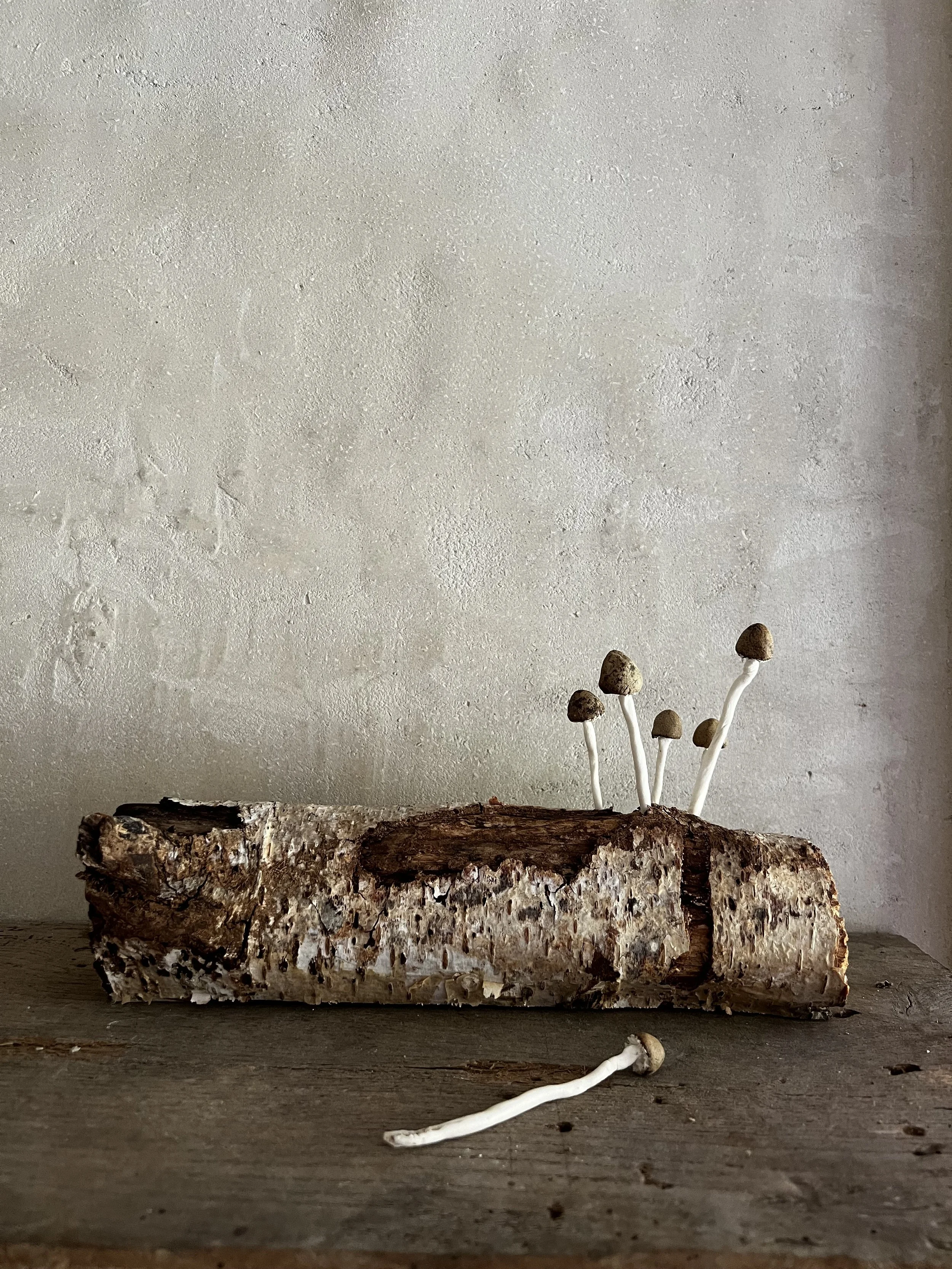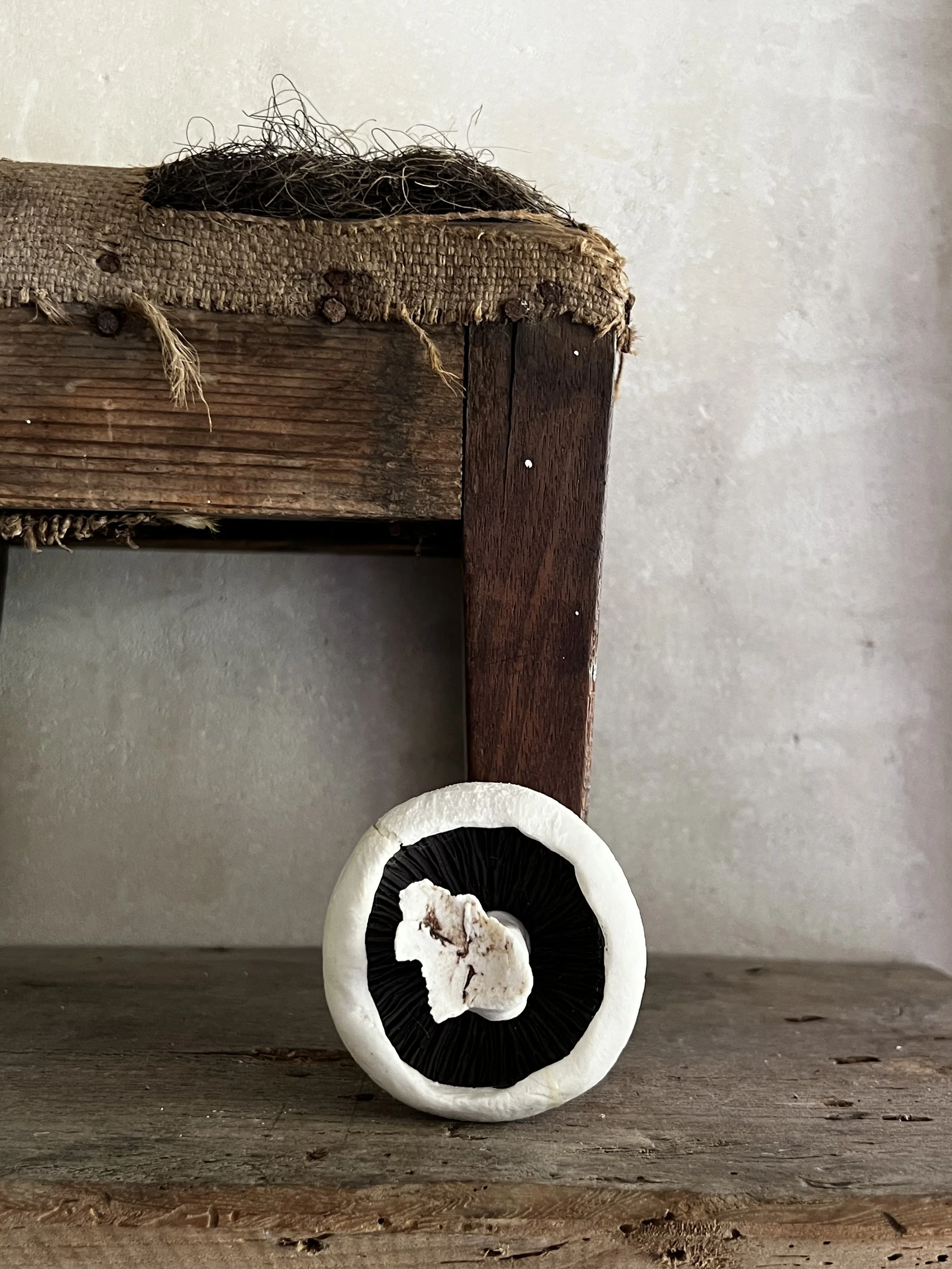 Made from porcelain and black clay these mushrooms look gorgeous. They are made to order with a 2 week lead time. They can have cracks on the main body of the mushroom as the different shrinkage rates between the two clays can result in this effect. I patch these up for the second firing with more porcelain, which gives a richer texture on the body of the mushroom and a less 'perfect' finish which adds more appeal as mushroom caps naturally crack as they age.
