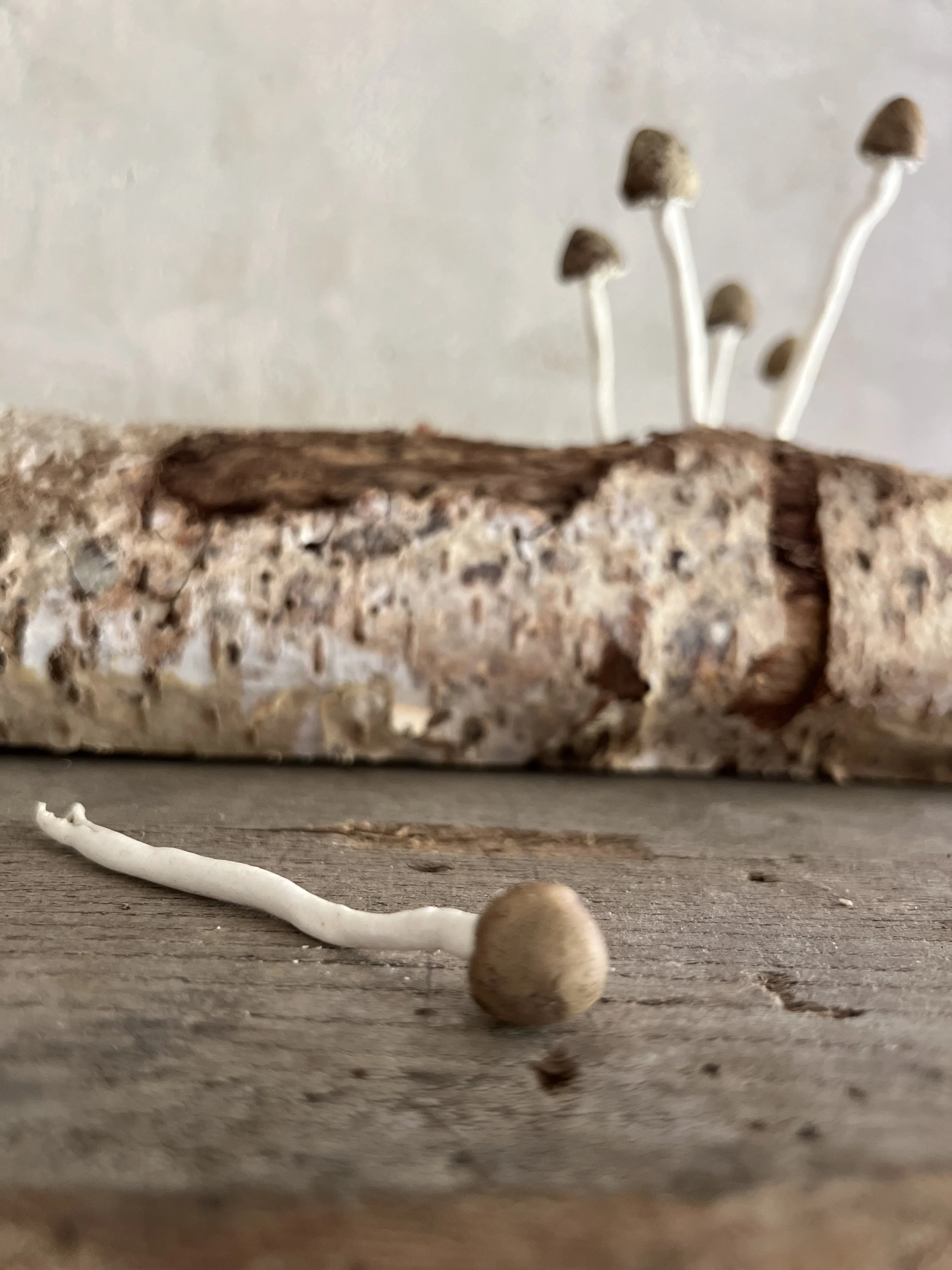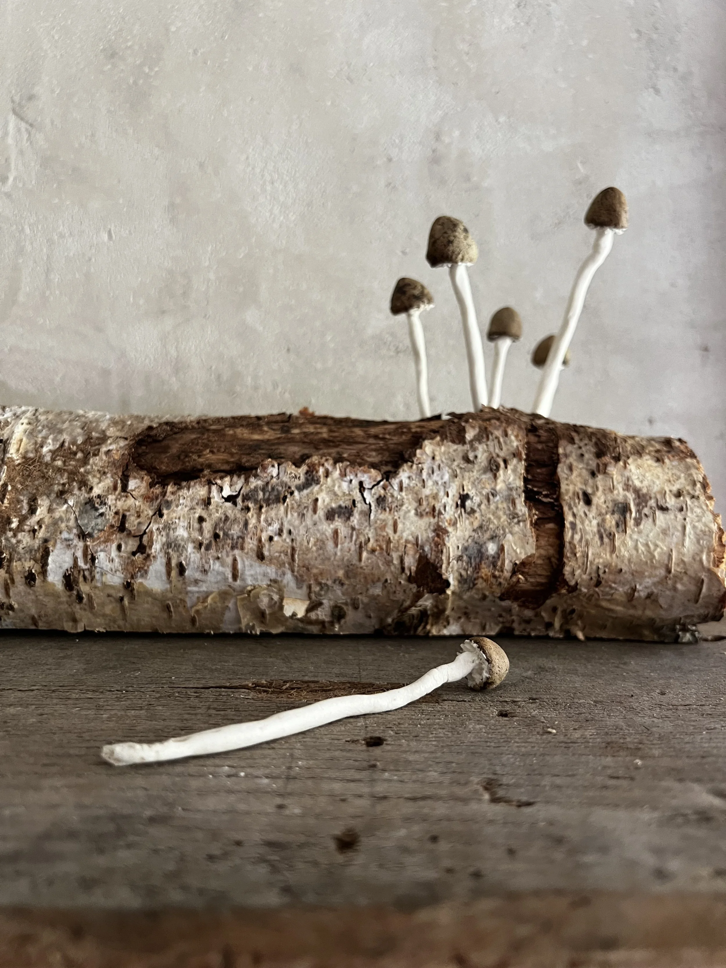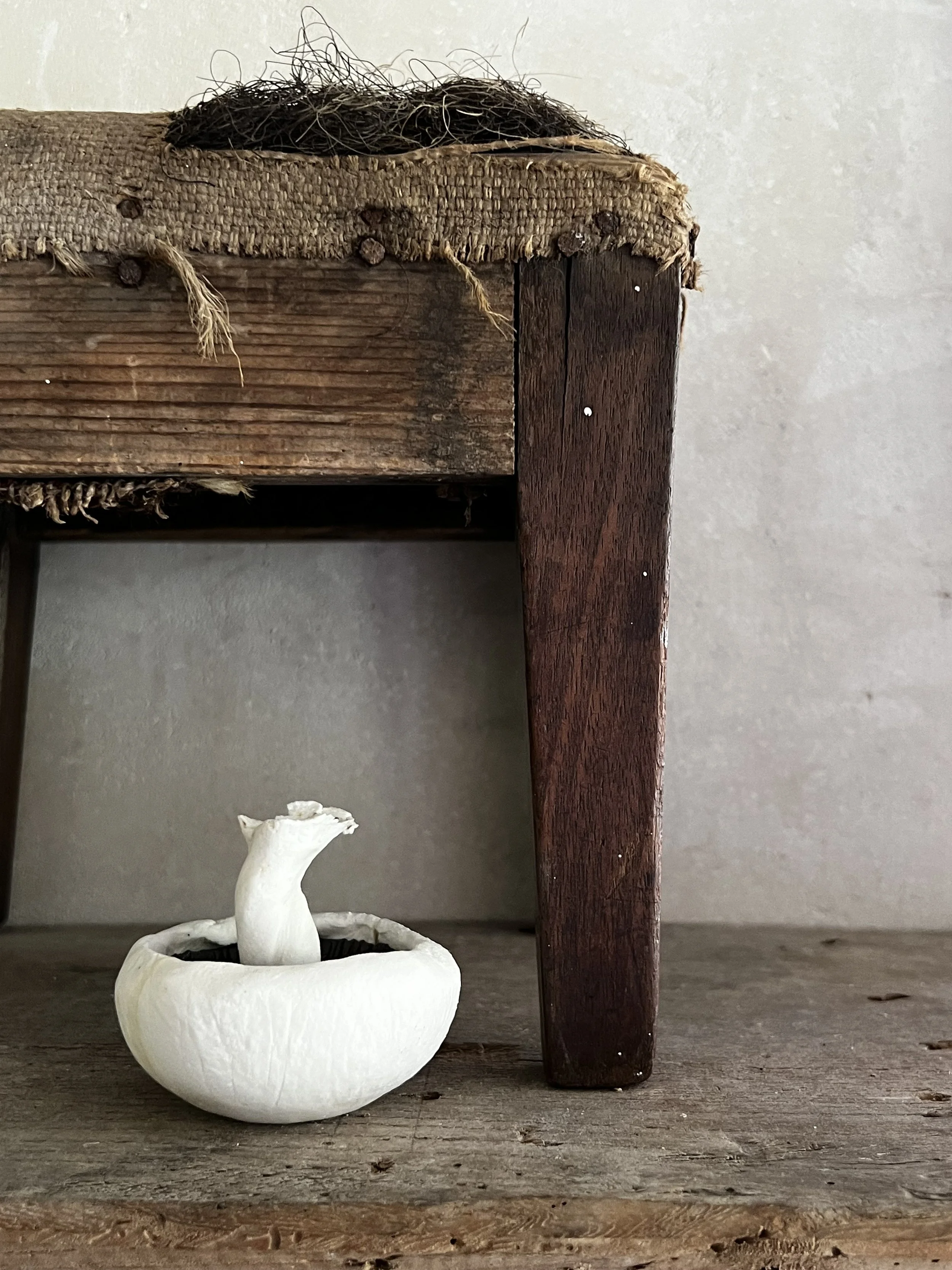 Made from porcelain and black clay these mushrooms look gorgeous. They are made to order with a 2 week lead time. They can have cracks on the main body of the mushroom as the different shrinkage rates between the two clays can result in this effect. I patch these up for the second firing with more porcelain, which gives a richer texture on the body of the mushroom and a less 'perfect' finish which adds more appeal as mushroom caps naturally crack as they age.