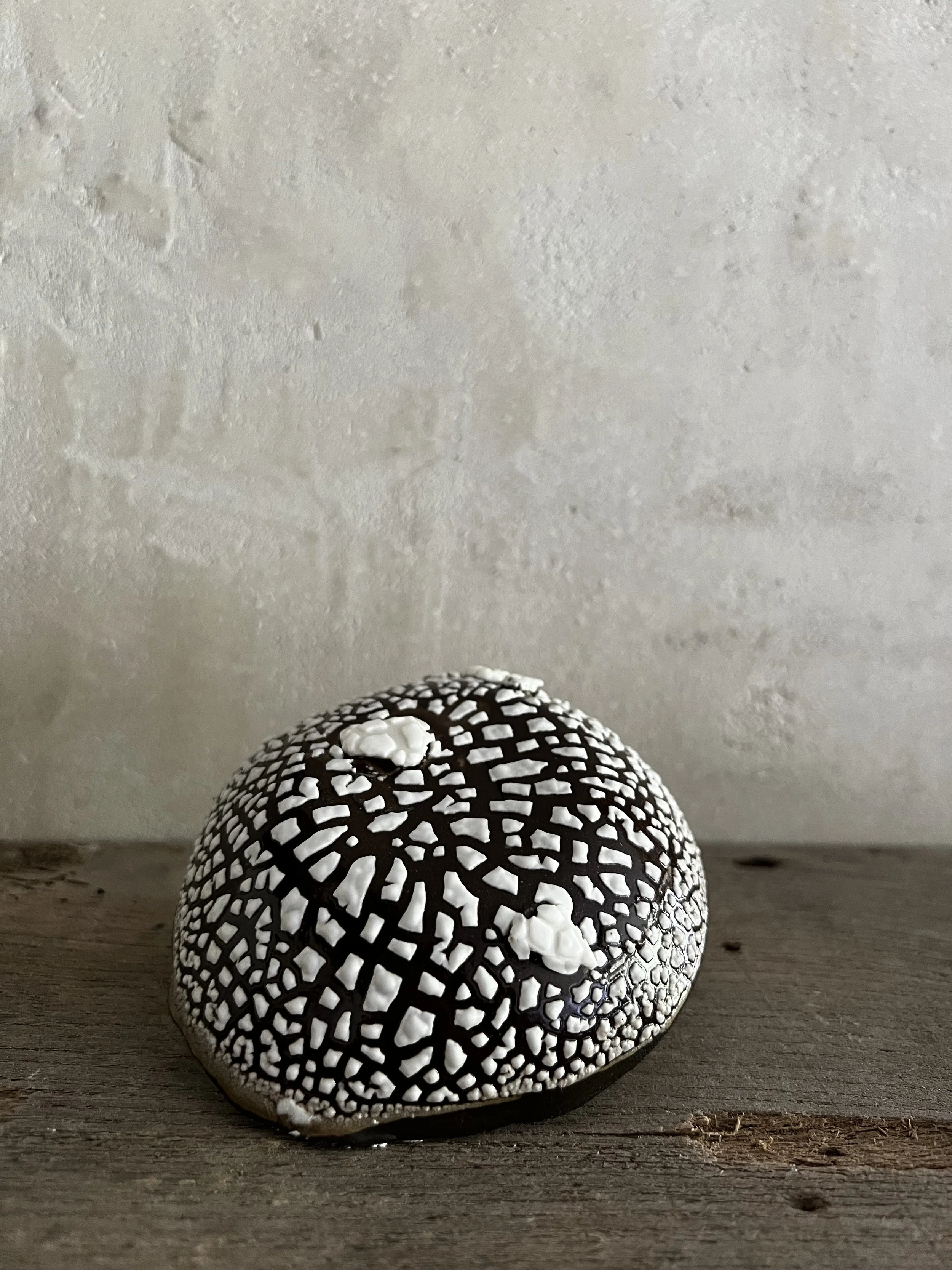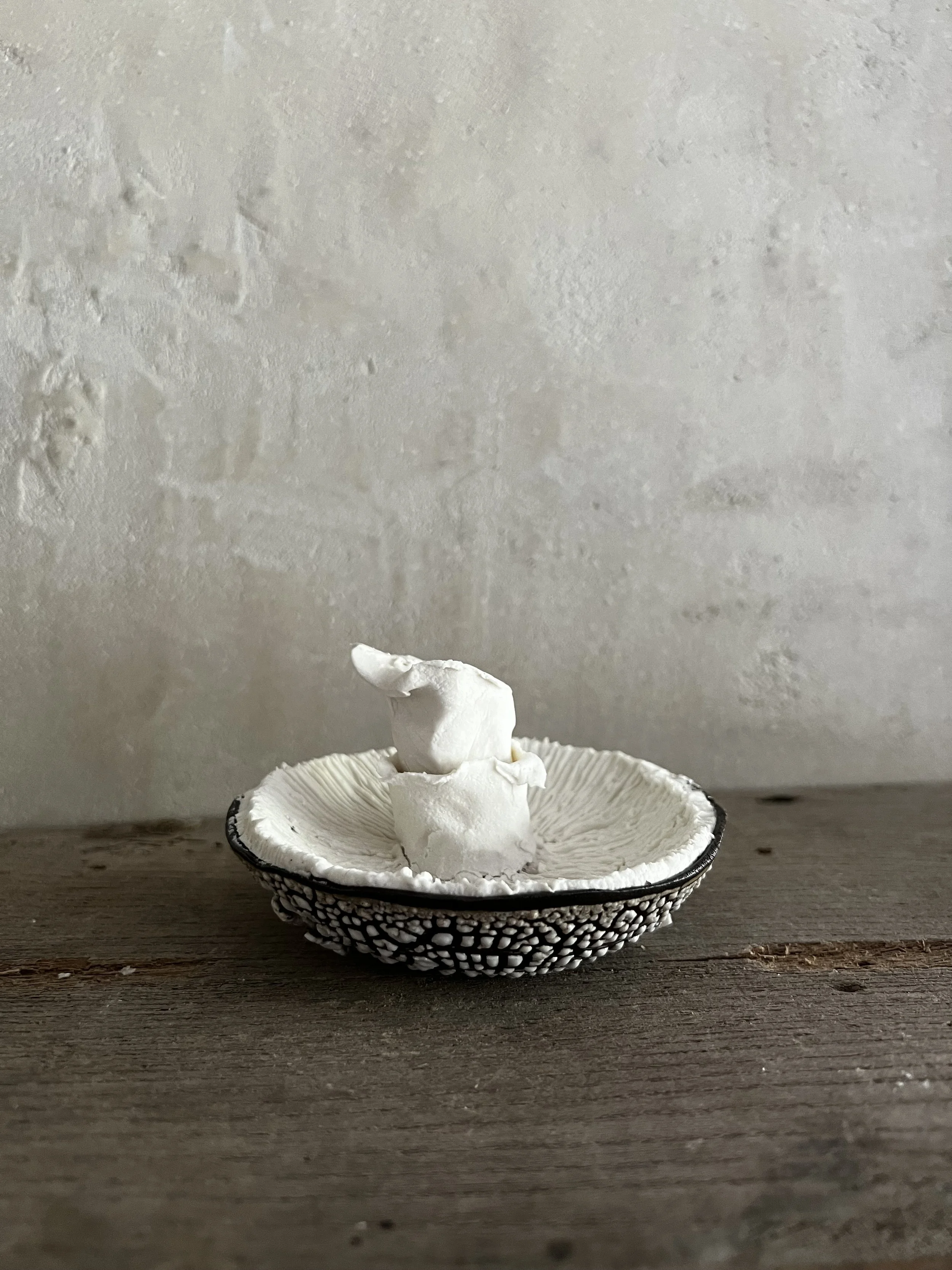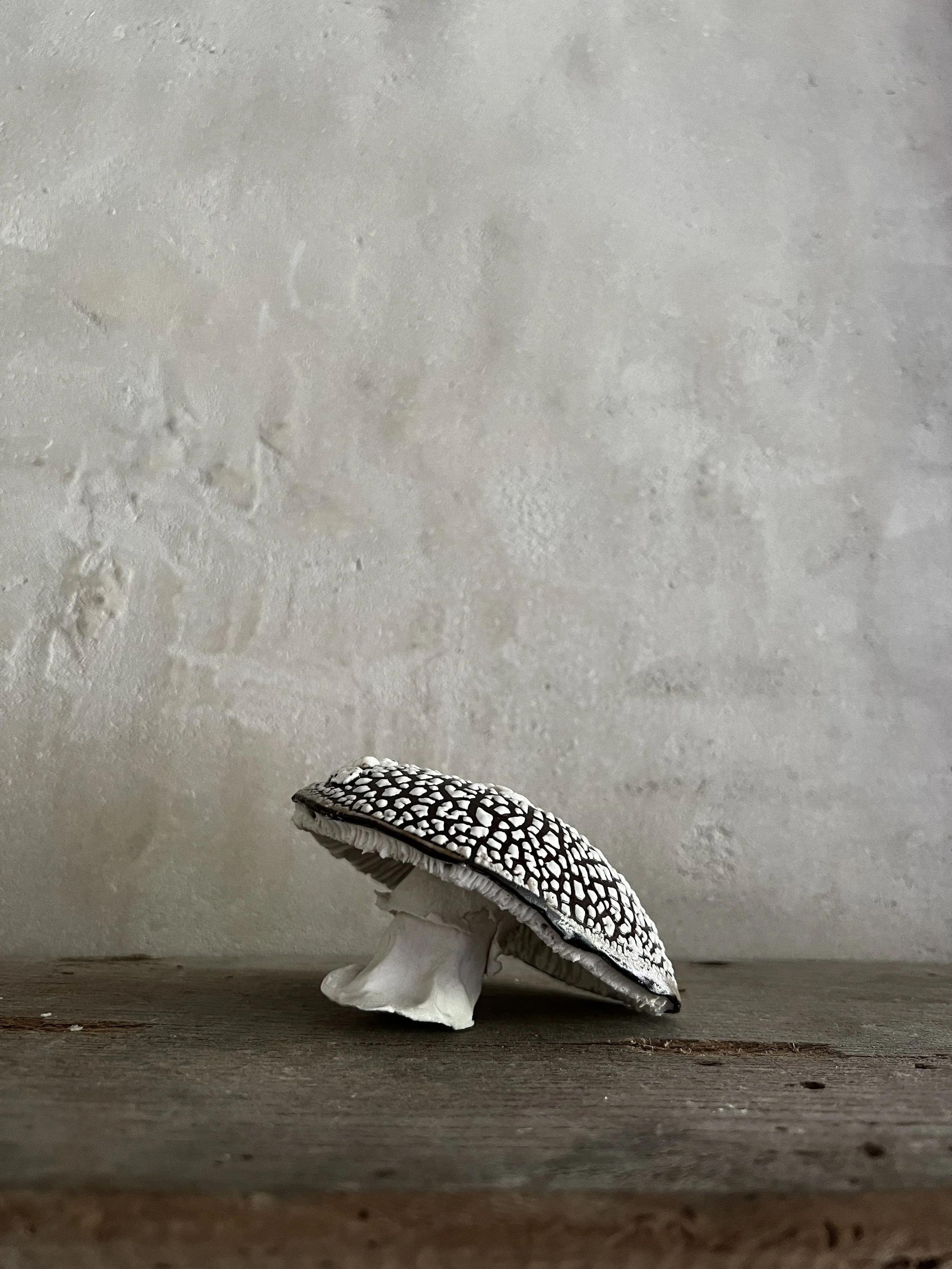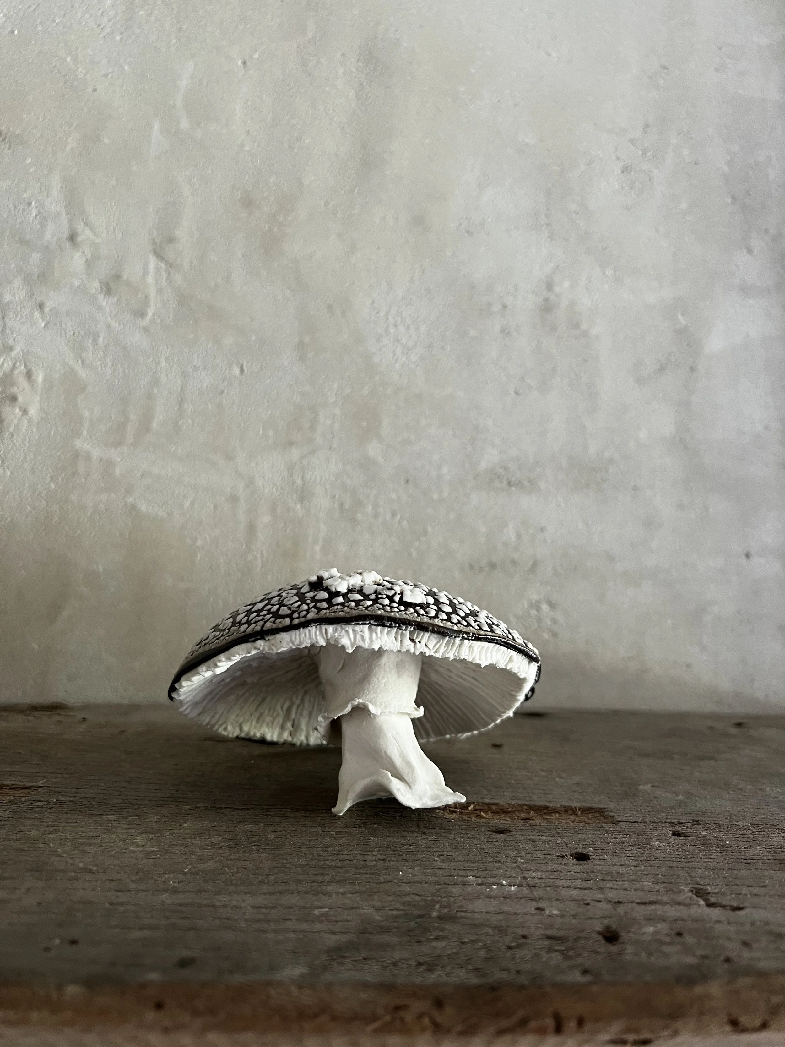 This cluster of mushrooms is made with a brown clay and porcelain. They are made to order so will take a couple of weeks.