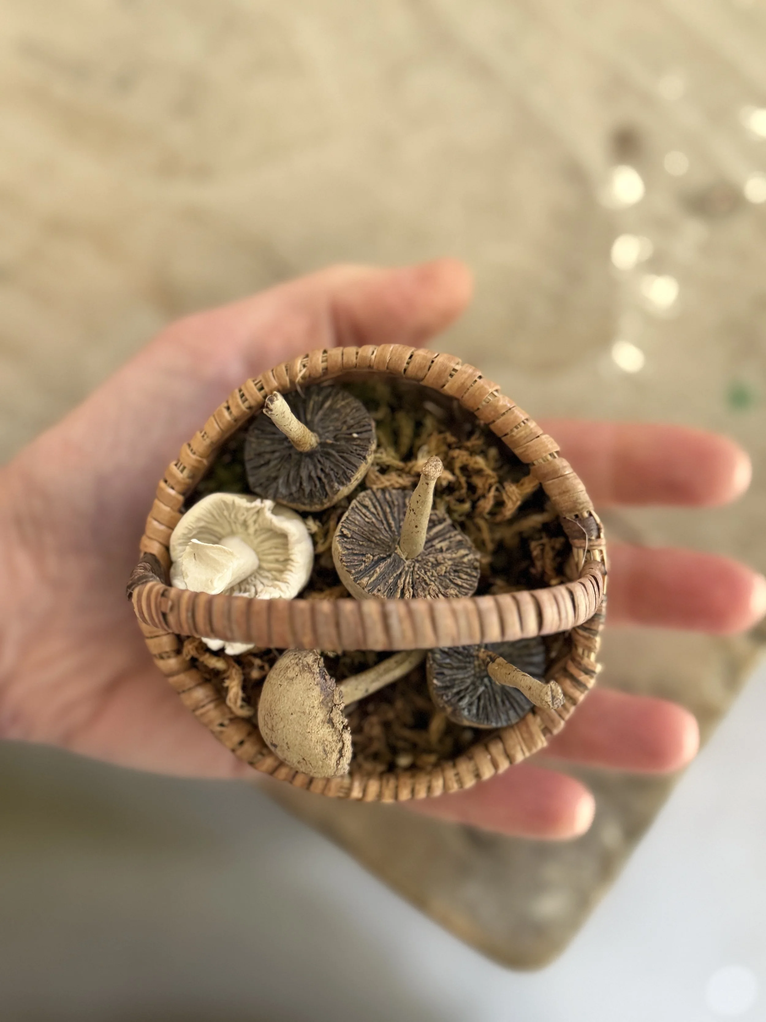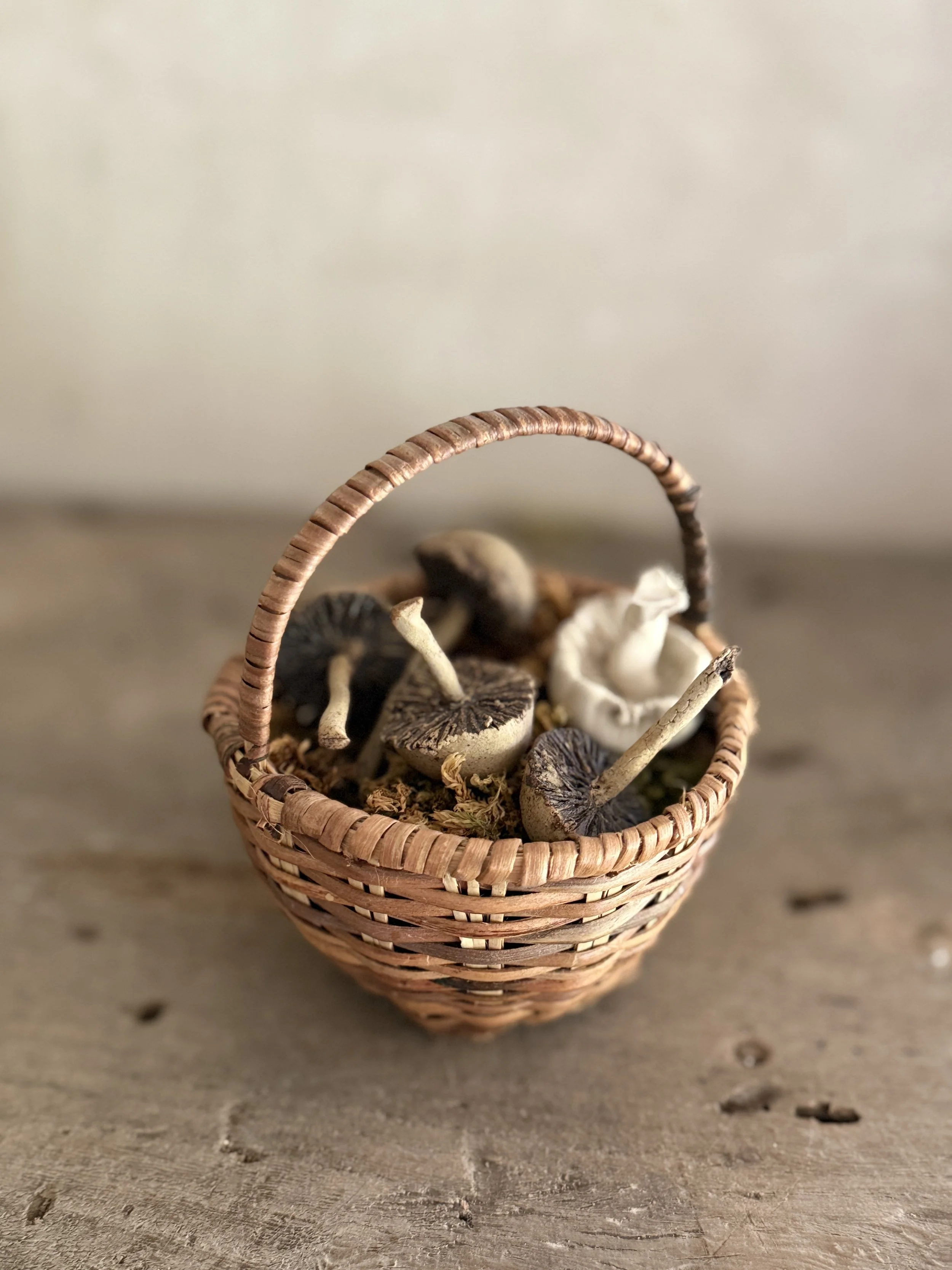 This mushroom is made entirely from porcelain. It is the most delicate mushroom in the collection, as this mushroom is very wispy in the wild and slightly translucent. It remains unglazed but is fired twice for strength. It is much stronger than it looks!