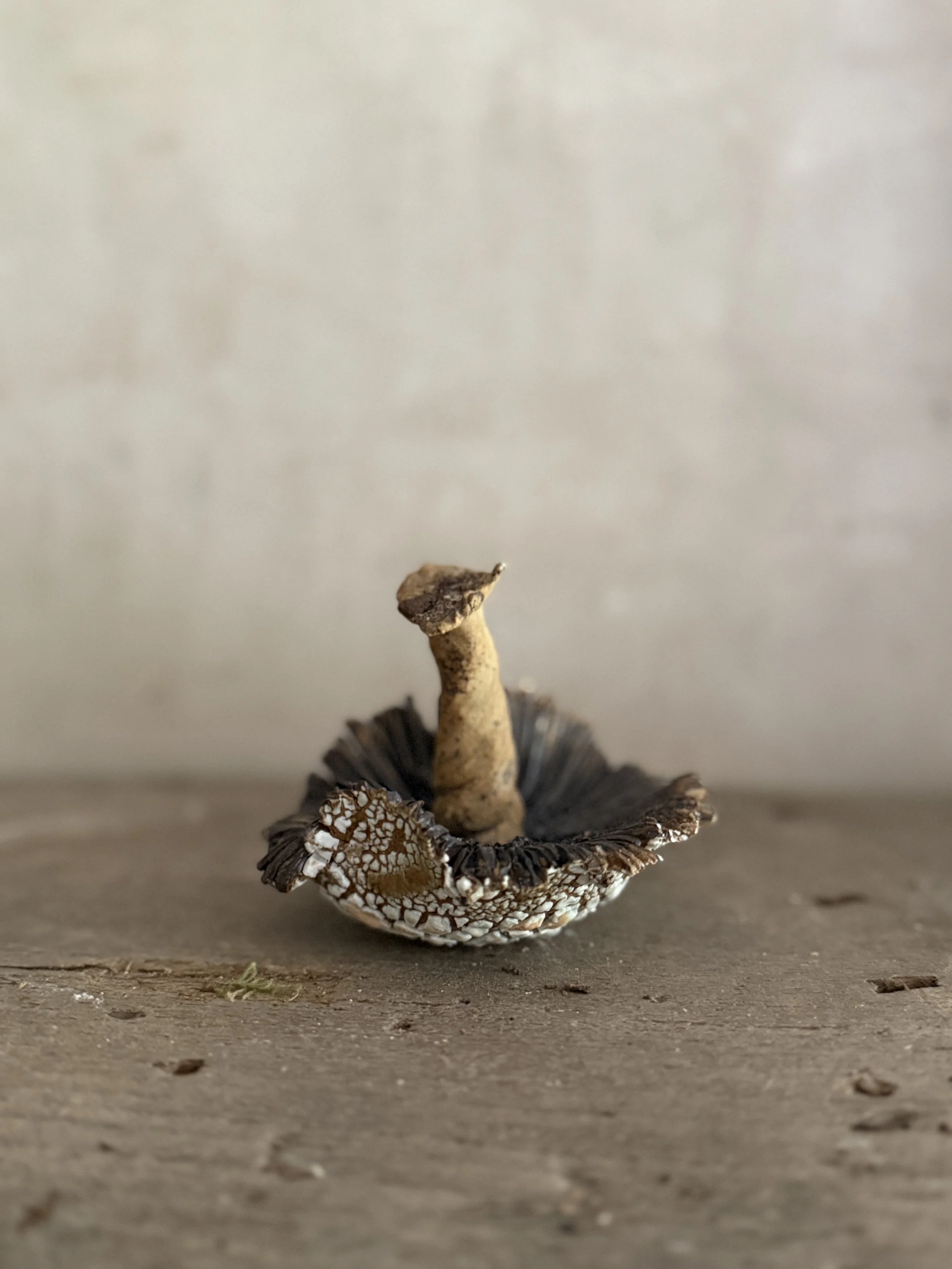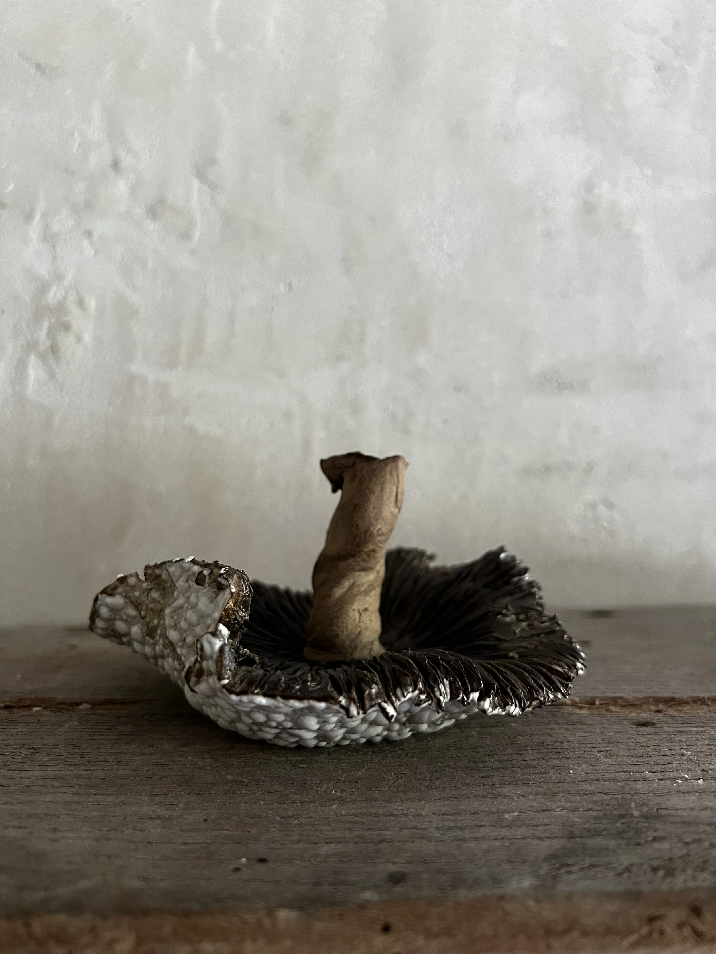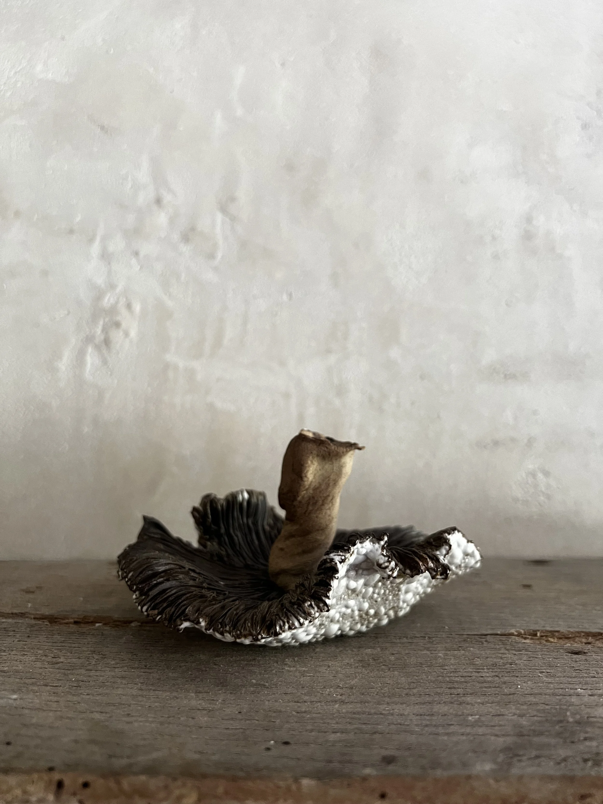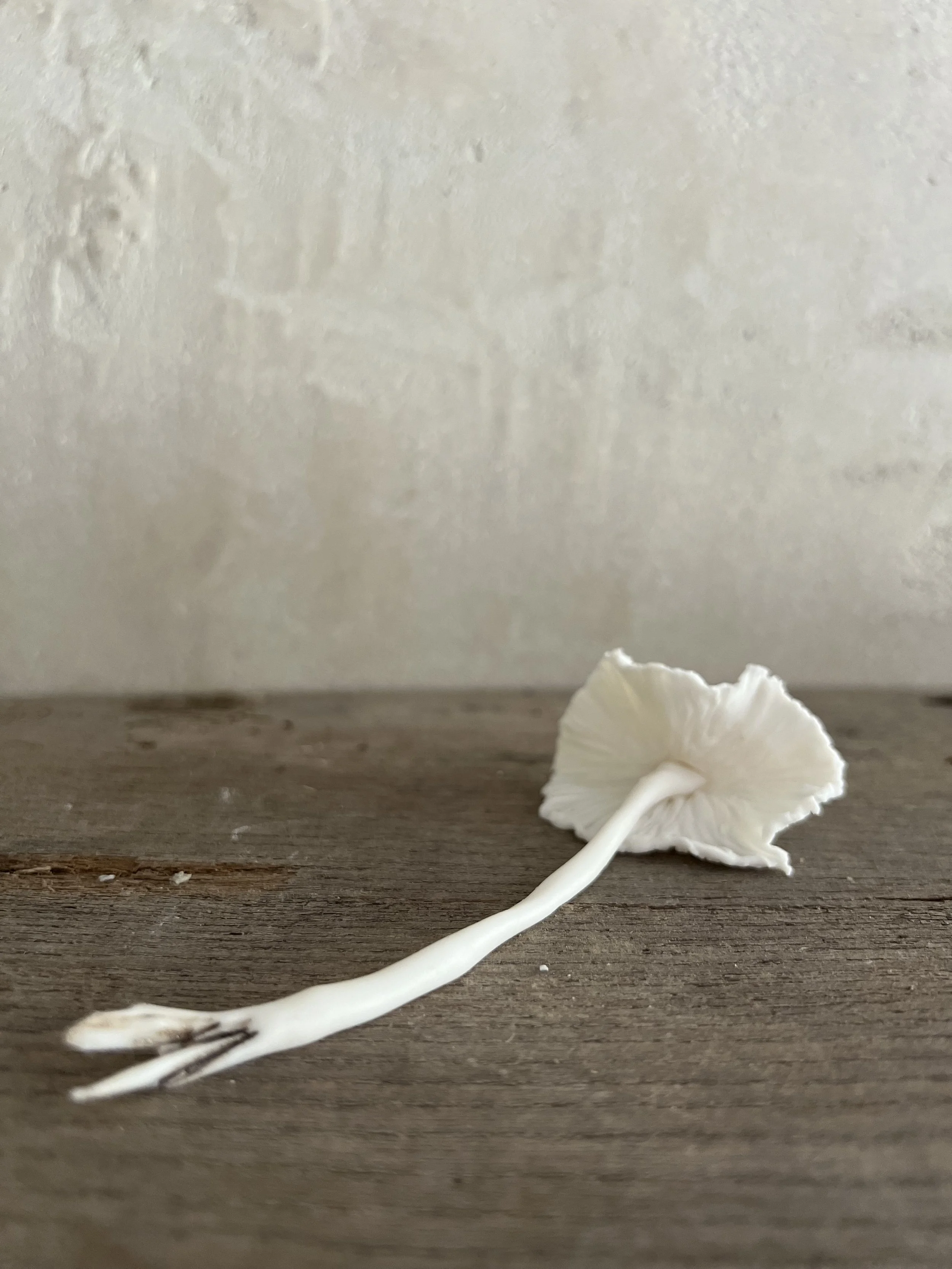 These mushrooms are made from porcelain to mirror their beautiful colour in nature. They are related to the Shaggy Inkcap mushrooms but remain white and pure. I have one in stock but can make to order.
