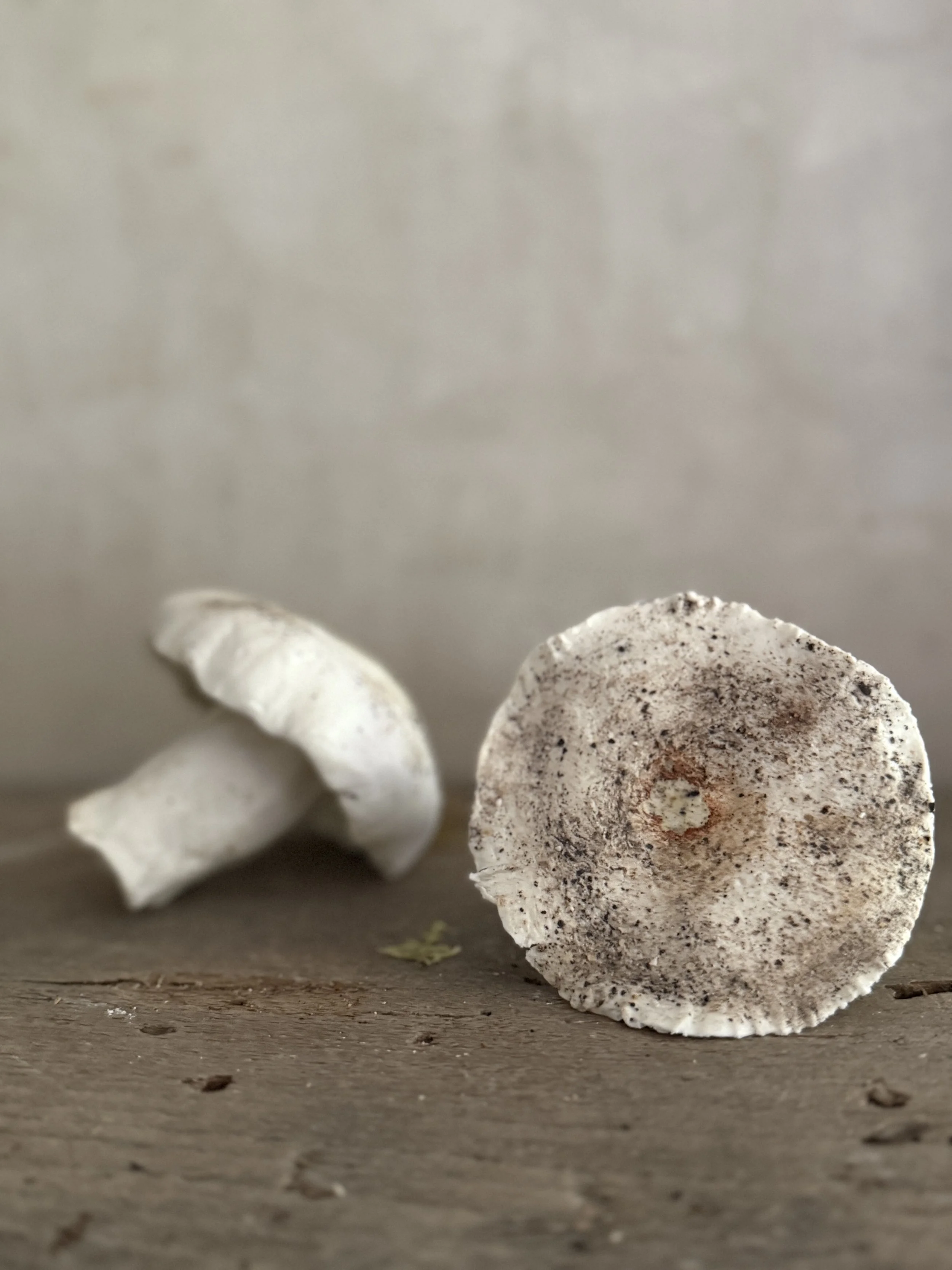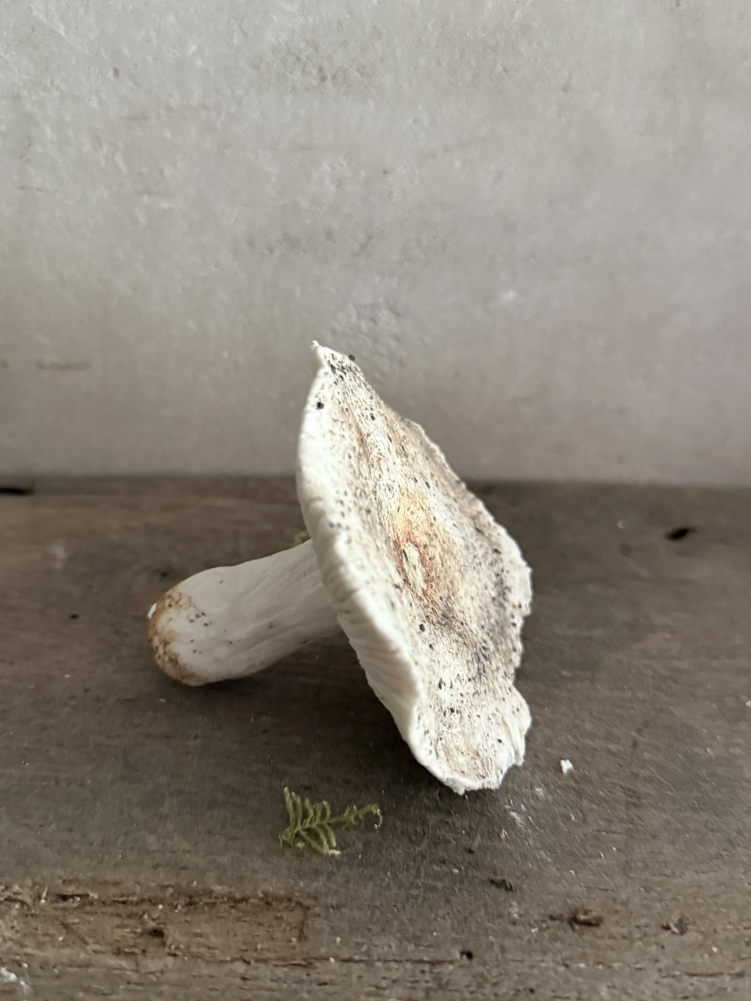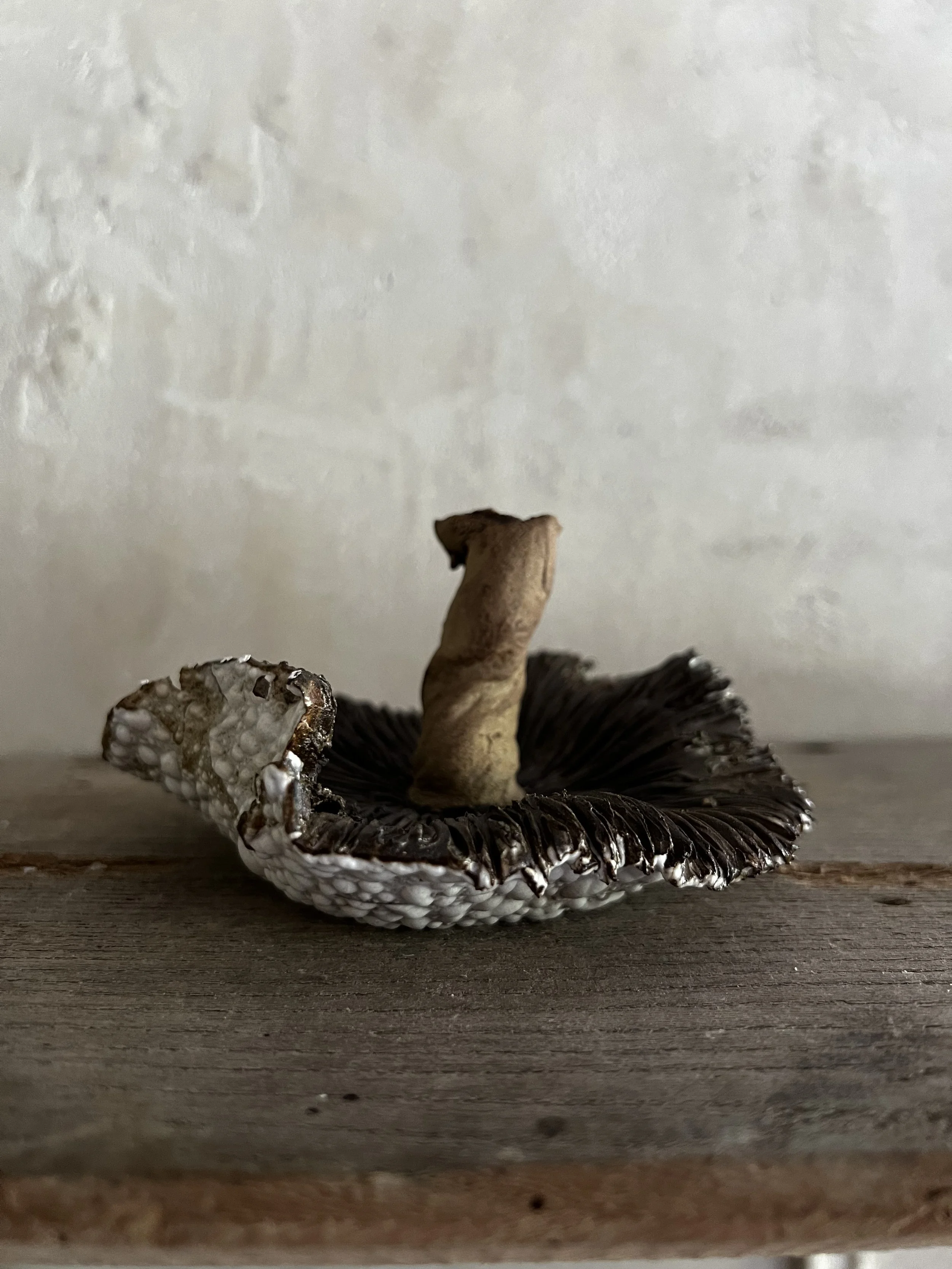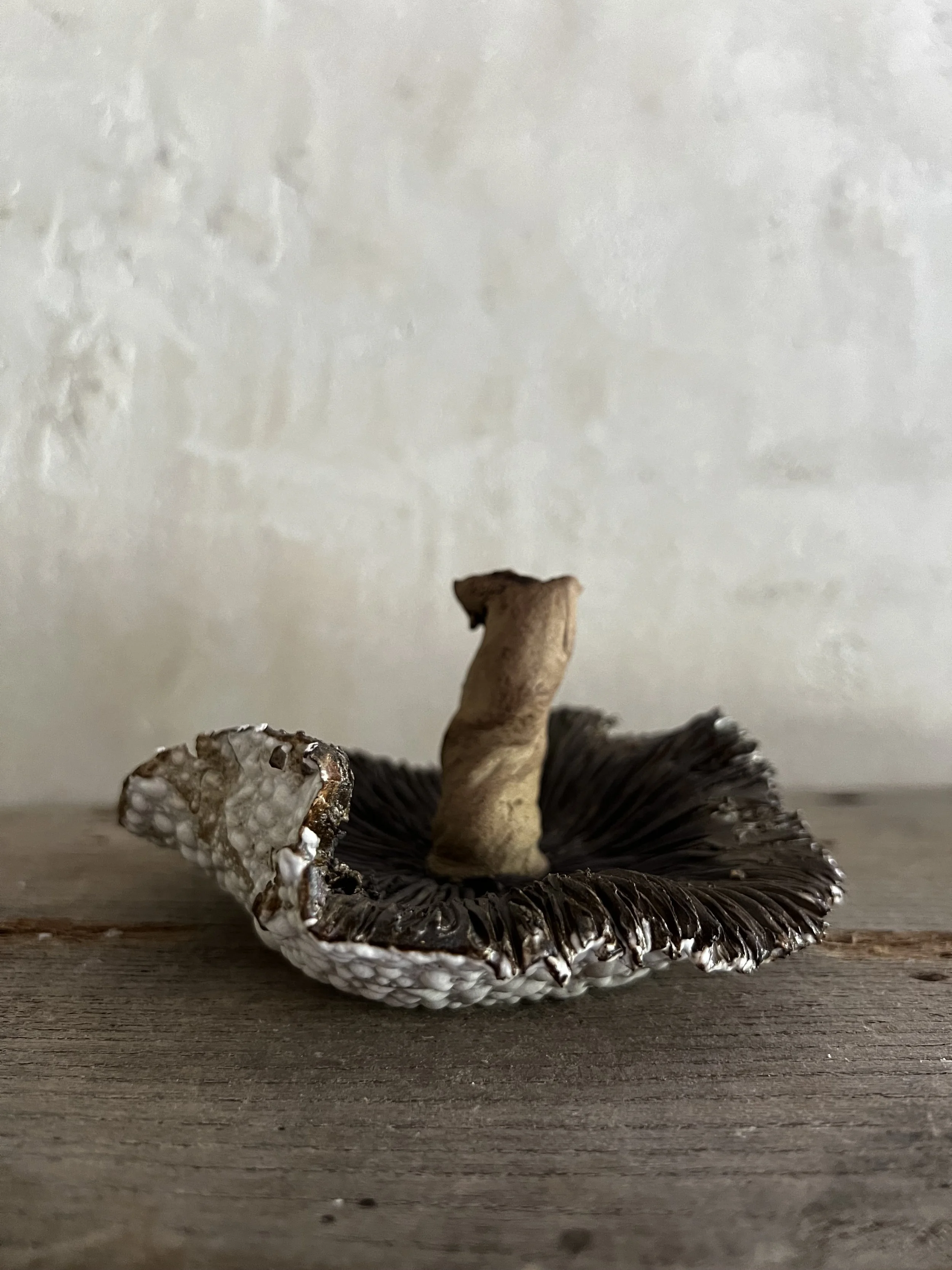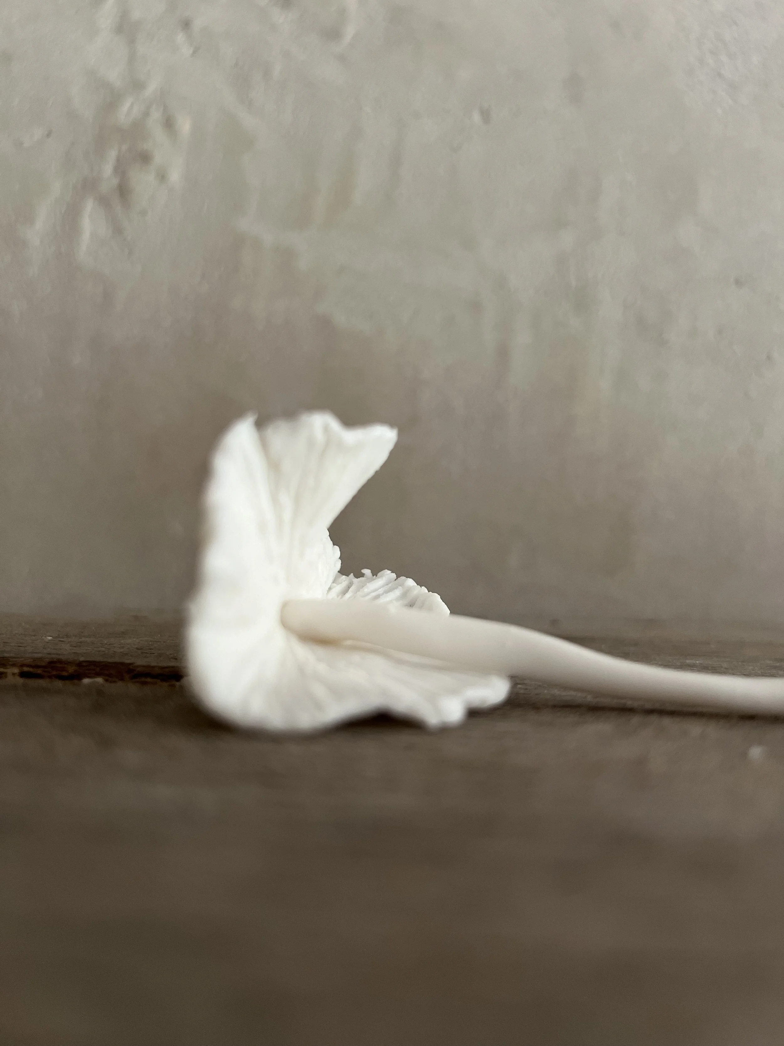 These mushrooms are made from porcelain to mirror their beautiful colour in nature. They are related to the Shaggy Inkcap mushrooms but remain white and pure. I have one in stock but can make to order.