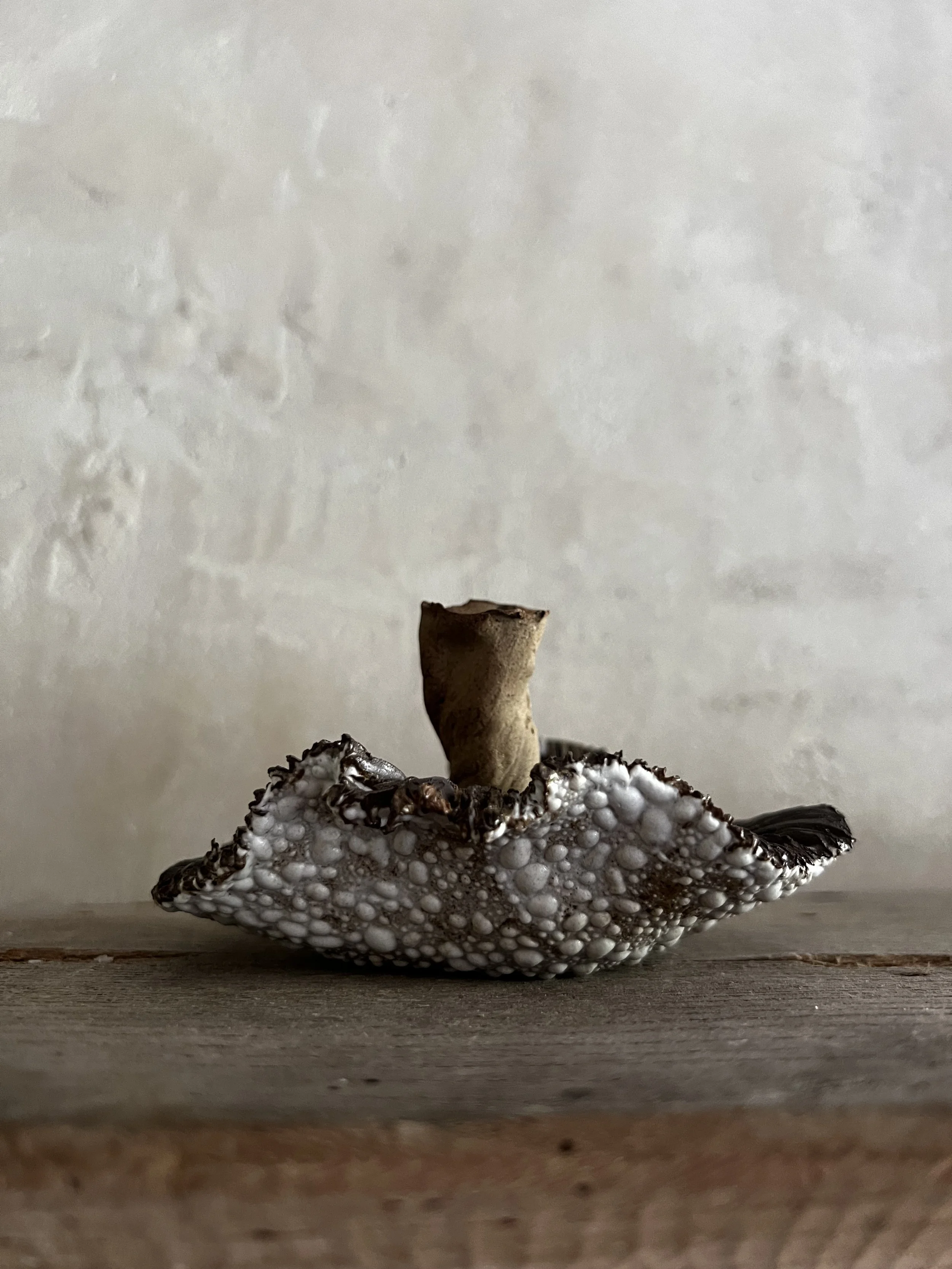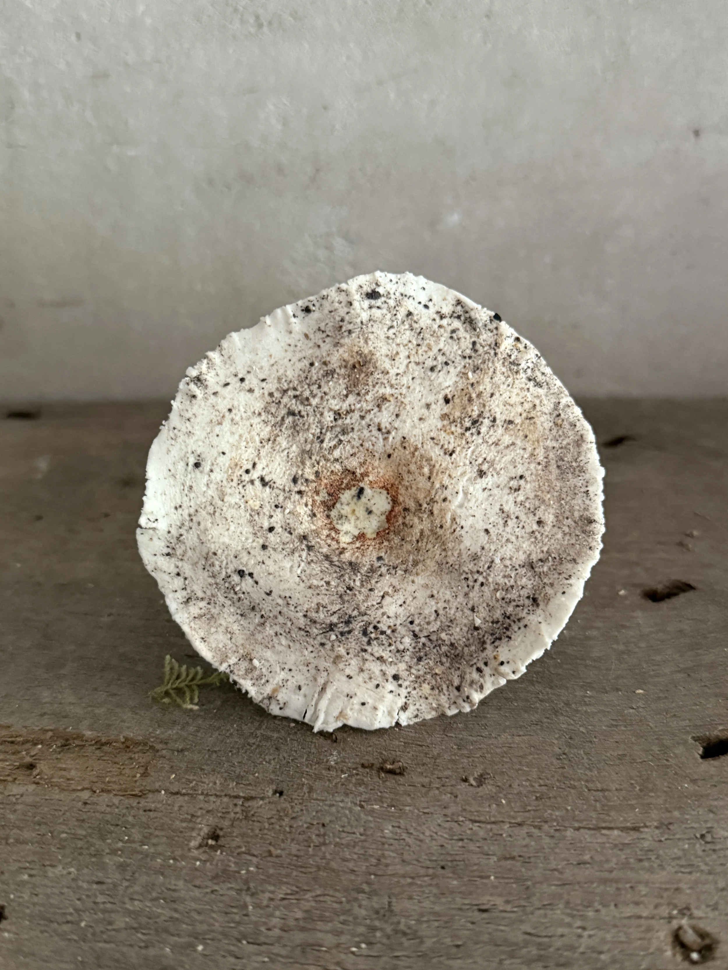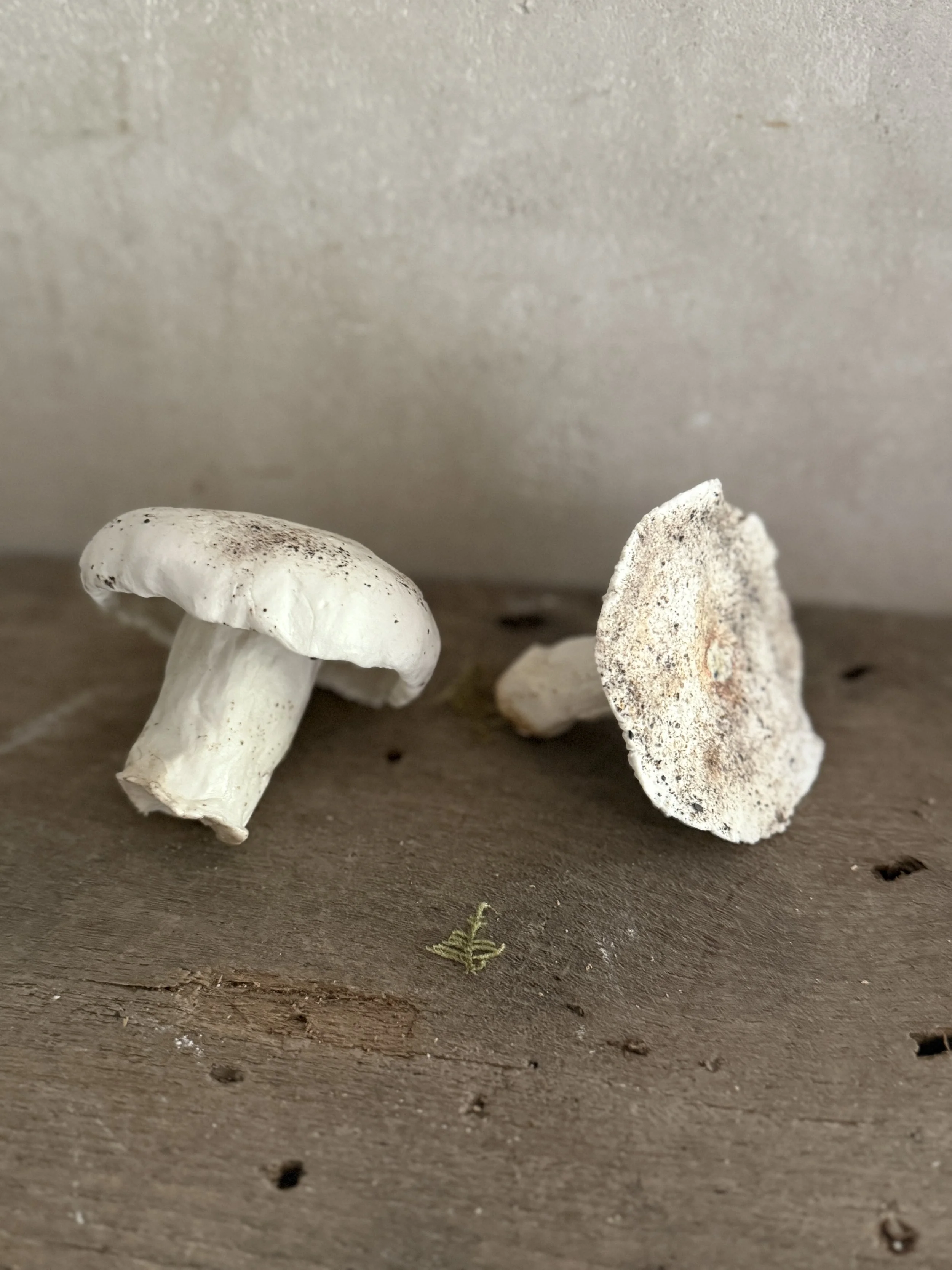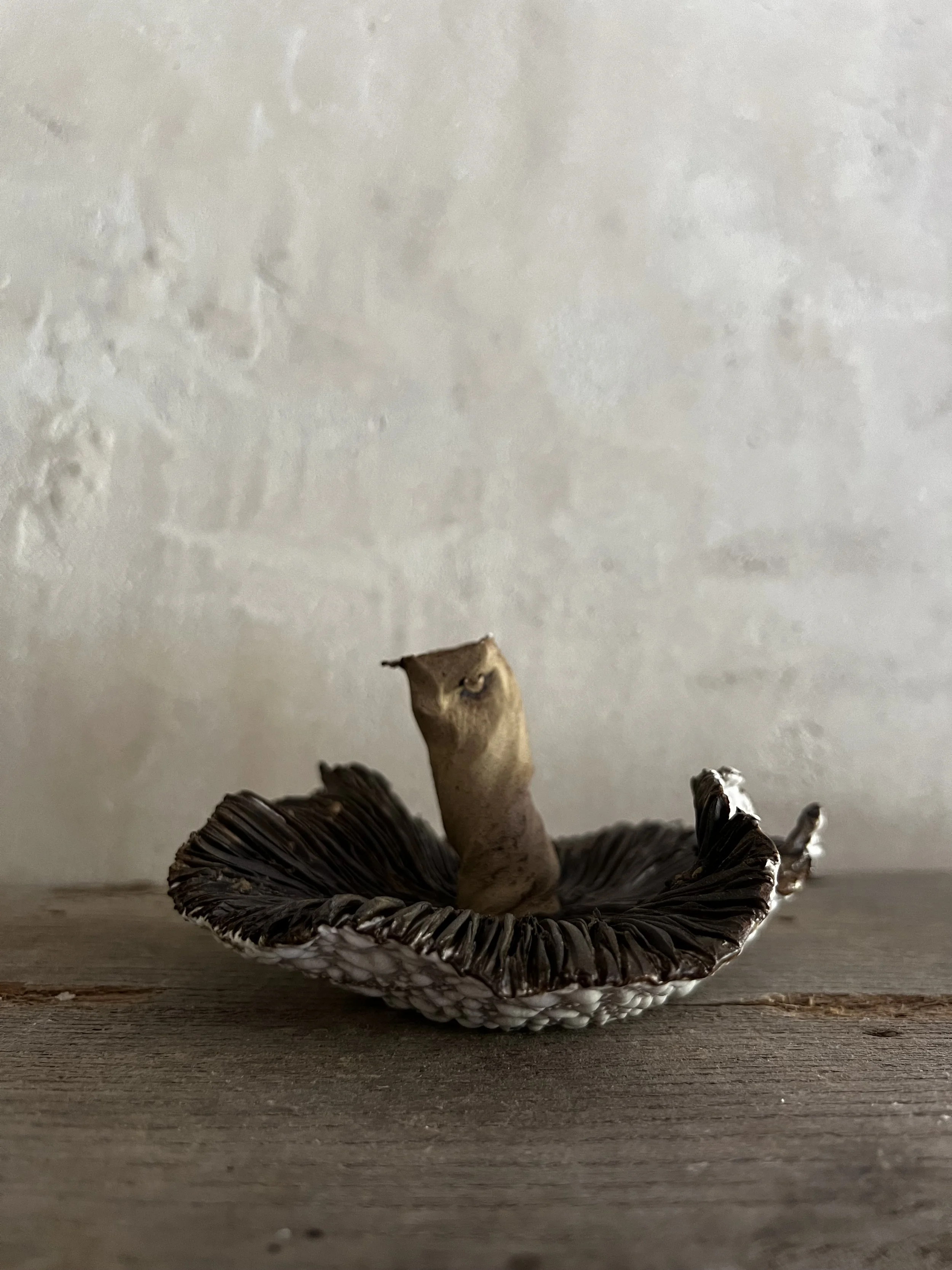 These mushrooms are made from porcelain to mirror their beautiful colour in nature. They are related to the Shaggy Inkcap mushrooms but remain white and pure. I have one in stock but can make to order.