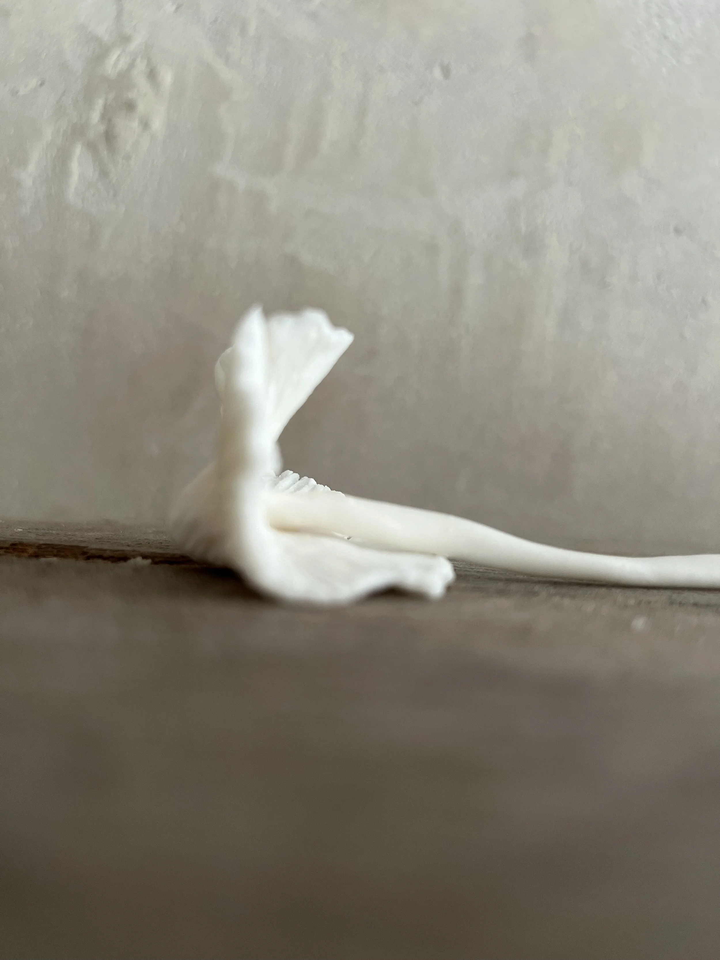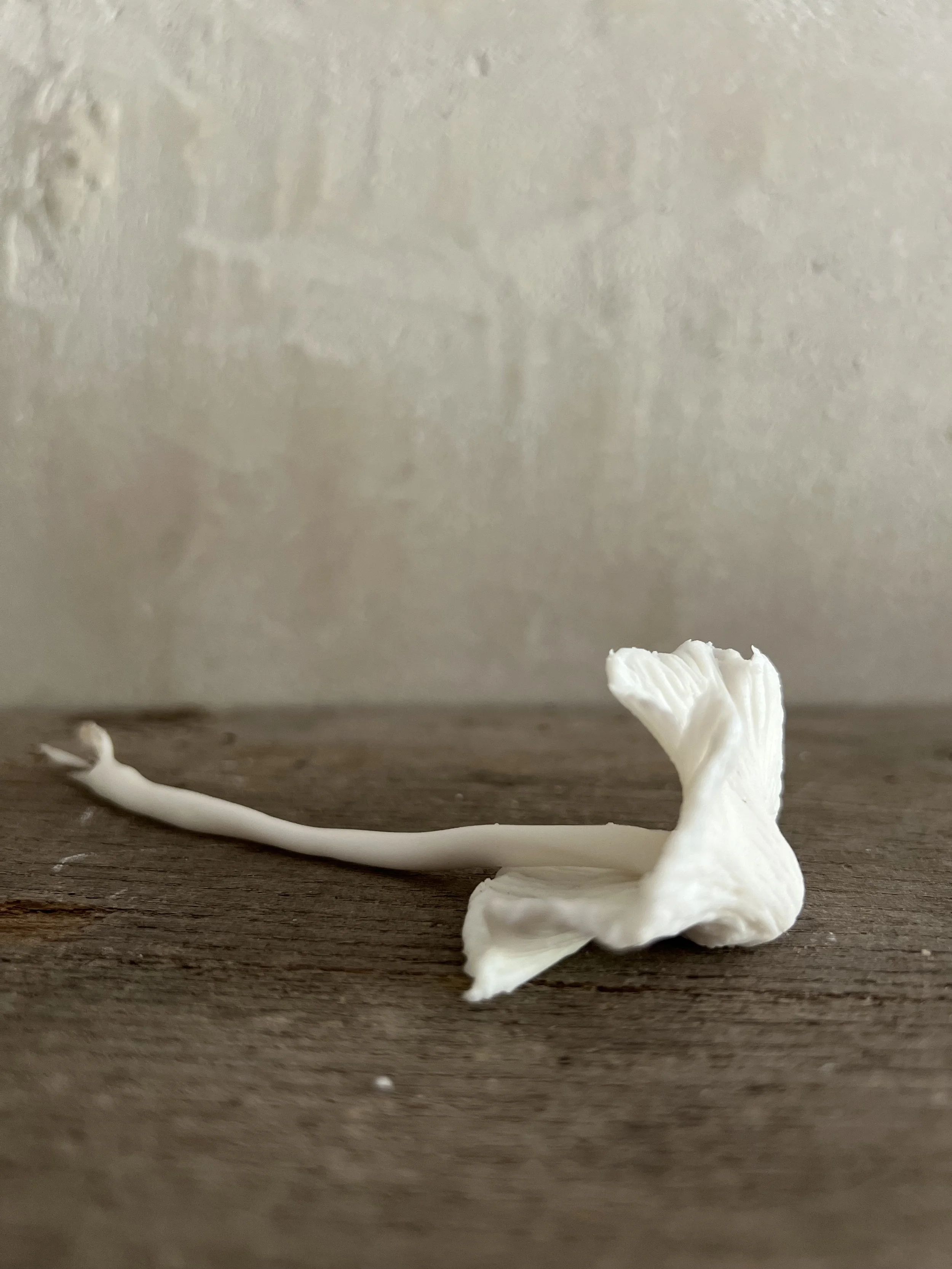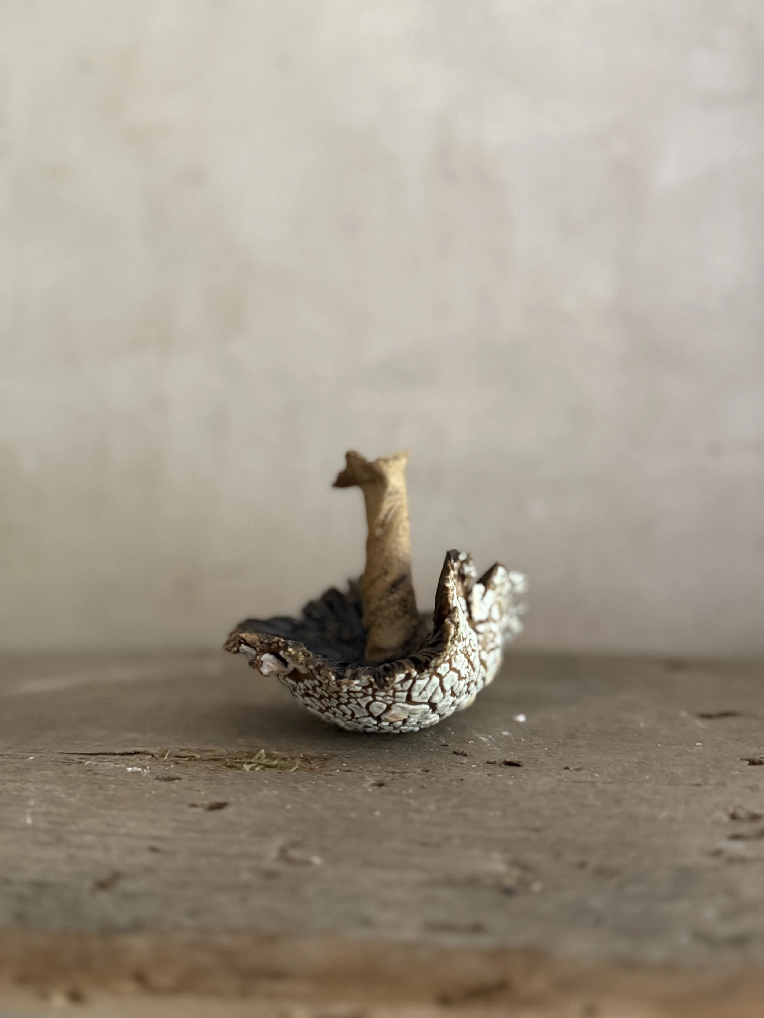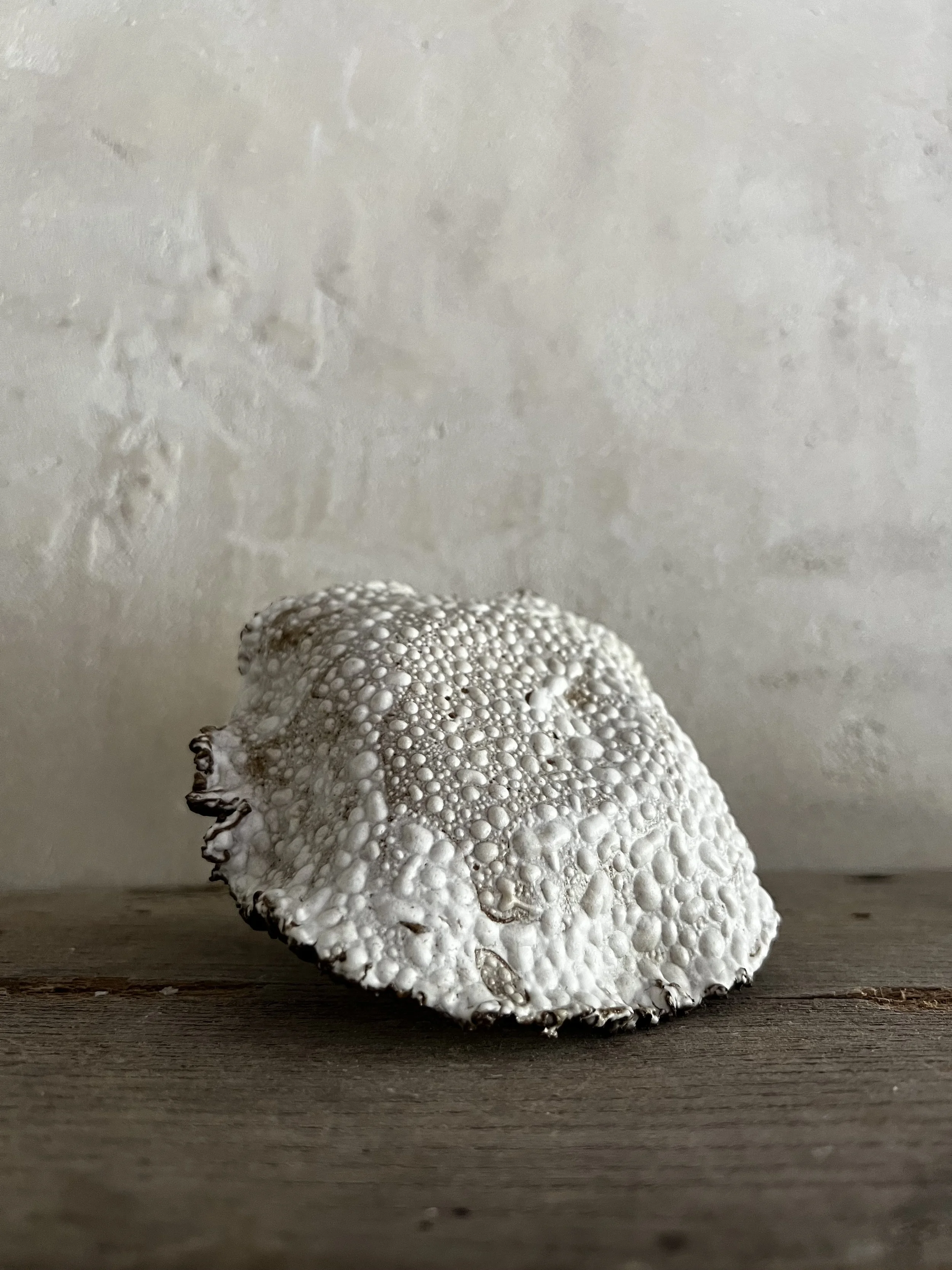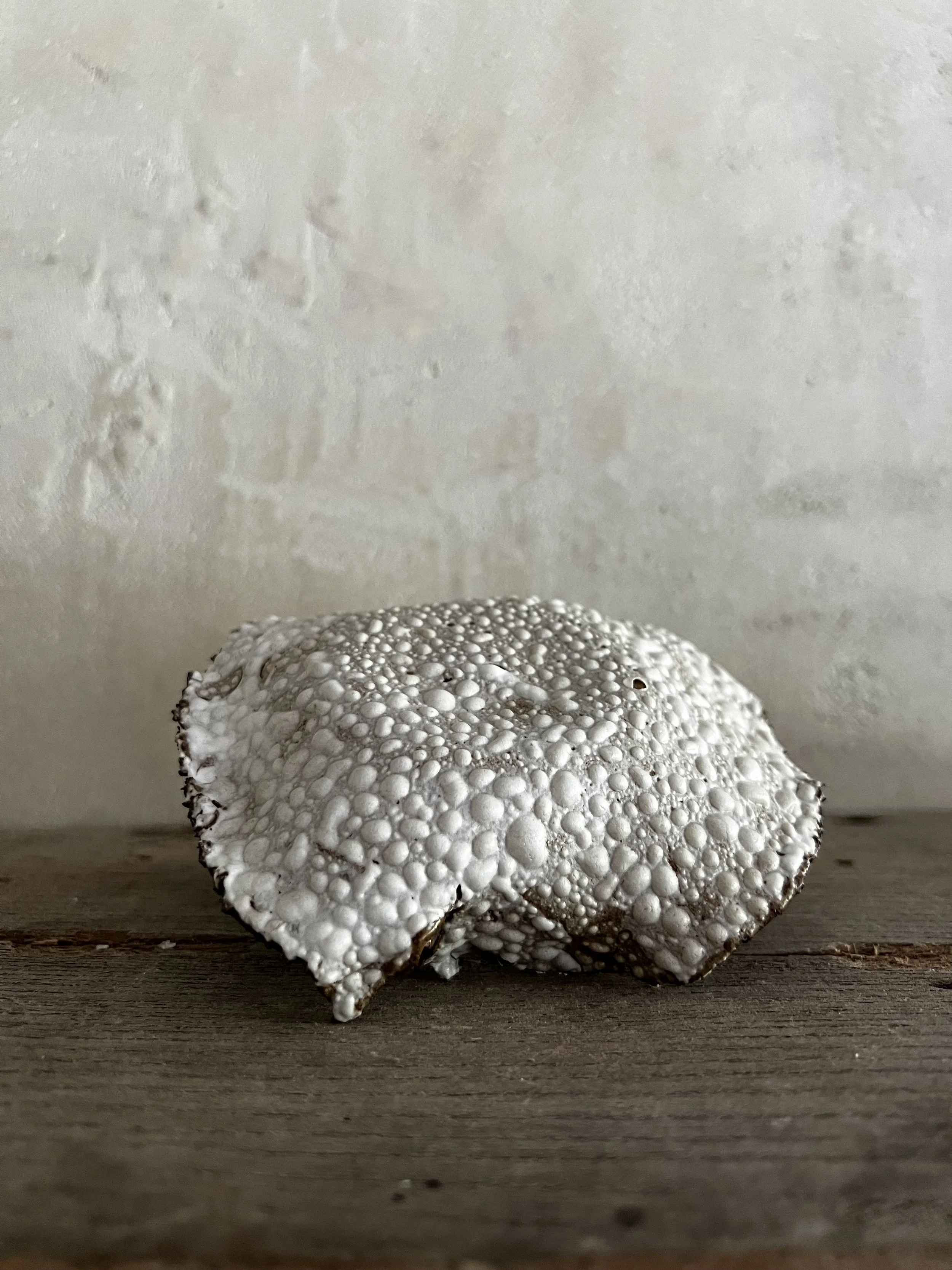 These mushrooms are made from porcelain to mirror their beautiful colour in nature. They are related to the Shaggy Inkcap mushrooms but remain white and pure. I have one in stock but can make to order.